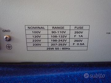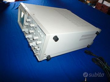 Vendo nuovissimo oscilloscopio doppia traccia 20MHz, uno strumento a basso costo da alte prestazioni, per il laboratorio elettronico, fornito completo di 2 sonde 10:1/1:1, cavo di alimentazione CARATTERISTICHE TECNICHE: - Formato schermo: 6 (8 x 10 div) 2 kV - Alimentazione: 100/120/220V AC ± 10% / 240V AC ±5% -10% 50/60 Hz - DEFLESSIONE VERTICALE: - Modi operativi: CH A, CH B, DUAL, ADD - Sensibilità 5mV~20V/div - Larghezza di banda: DC DC~20MHz AC 10Hz~20MHz - Impedenza d"ingresso: 1 MOhm 30pF ± 3pF - Tempo di salita: 17.5nS - Frequenza chopper: 200 kHz - Tensione max. ingresso: 600Vpp (300V DC + AC peack) - DEFLESSIONE ORIZZONTALE: - Modi operativi: AUTO, NORM - Velocità di sweep: 0.2 µS ~ 0.5 S/div - Sorgenti del trigger: CHB, LINE, INT, EXT - Accoppiamento trigger: AC, AC-LF, TVAC, AC-LF, TVv - Sensibilità trigger: INT. 2.0 div(DC~20MHz) EXT. 1Vpp(DC~DC~20MHz) - MODO OPERATIVO: X-Y Gamma operativa: DC~1 MHz - Differenza di base: < 3° (50 kHz) - Dimensioni (mm) 356x435x147 - Peso 7 kg