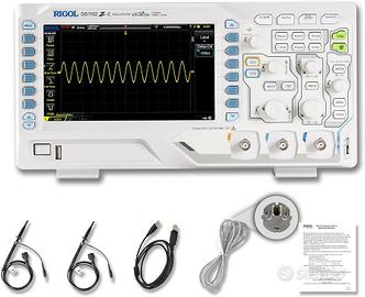 OSCILLOSCOPIO NUOVO - MAI APERTO - NO PERDITEMPO. Il modello DS1102Z-E è un oscilloscopio digitale a 100 MHz a 2 canali, con velocità di campionamento 1GS/sec, con caratteristiche eccezionali, come una profondità di memoria molto ampia di 14 MioPkt. Nonché il triggering bus seriale integrato e SPI, I2C, decodifica RS232, display a colori grande da 7 pollici, per una visualizzazione ottimale dei segnali di misurazione. Le interfacce LAN, USB e AUX sono standard, così come molte funzioni Math.