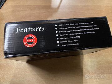 Vendo oscilloscopio USB Hantek 6022BE, nuovo e mai aperto, acquistato per errore. Oscilloscopio digitale a 2 canali con banda 20 MHz e campionamento fino a 48 MSa/s, utilizzabile da PC tramite USB con software dedicato. Adatto per studio, laboratorio e hobbistica elettronica. Confezione completa con cavo USB, 2 sonde e manuale. Acquistato su Banggood, fornisco prova d’acquisto.