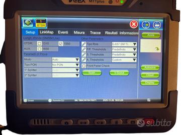 VeEX MTTplus 410 usato in ottime condizioni, praticamente nuovo. Completo di modulo OTDR con lunghezze d’onda 1310 1550 e 1650 nm interfaccia touchscreen funzionante e reattiva alimentazione e tasti perfettamente operativi strumento ideale per test fibra ottica OPM VFL e analisi tracce include tutte le funzioni attive visibili in foto display pulito scocca integra senza crepe aggiornato e pronto all’uso macchina affidabile per tecnici FTTH e reti backbone. Insieme allo strumento viene fornito la bobina di lancio, un Powermeter ricaricabile, più sorgente luminosa da 50mw.