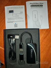 OTTOCAST Play2video Ultra 2026, Adattatore CarPlay e Android Auto Wireless con App Hub e YouTube netflix amazon video Dazn IPtv ecc, Plug & Play, Chip 5G, 4GB + 32GB, WiFi 6, GPS INTEGRATO, SISTEMA ANDROID, Adattatore all in one.