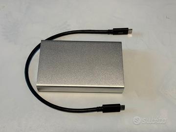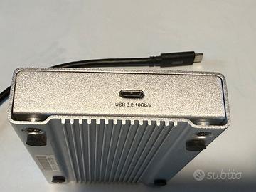 Come nuovo, completo di cavo usb-c originale e disco ssd Crucial MX500 da 1 Tb con vita residua (stimata dal software Crucial) al 99%. Spedifiche OWC: Drive Bays 1 bay supporting: 2.5-inch SATA HDDs, 2.5-inch SATA SSDs Supports drives up to 12.5mm in height Plug and Play Yes Device Ports (1) Host Port - USB 3.2 Gen 2 (USB-C) up to 10Gb/s (1250MB/s) - USB 2.0/3.0 backwards compatible UASP Support UASP (USB Attached SCSI Protocol) is supported Chipset / Controller ASM235CM Power Supply Bus-powered Power/Activity LED(s) Yes Housing Color Silver Housing Material Aluminum Dimensions Height: 2.4 cm (0.9 in) Length: 12.4 cm (4.9 in) Width: 7.8 cm (3.1 in) Weight 130.0 g (0.29 lbs) Ambient Temperature Operating: 41°F to 95°F (5°C to 35°C) Non-Operating: -4°F to 140°F (-20°C to 60°C) Humidity Operating: 8% to 90% non-condensing Non-Operating: 5% to 95% non-condensing