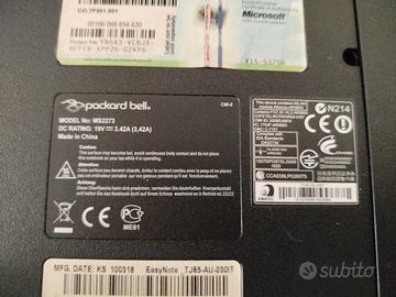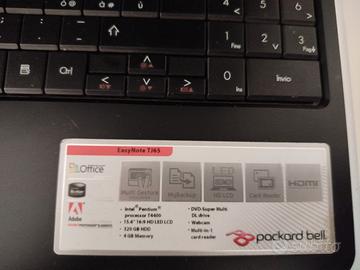 Packard bell 17" processore Intel Pentium T4400 sistema operativo Windows 10 320 GB HDD 4 GB di memoria Easy note tj65 mancante di batteria ha il cavo alimentazione