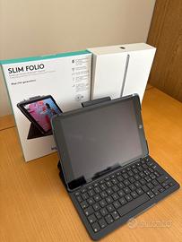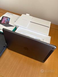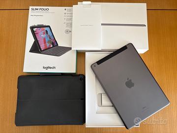 iPad Wi-fi + Lte (cellulare) 10.2” 32GB Grigio + custodia protettiva con tastiera Bluetooth integrata Logitech Slim Folio pari al nuovo.