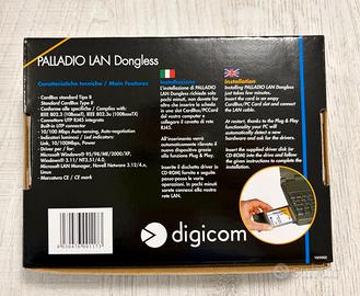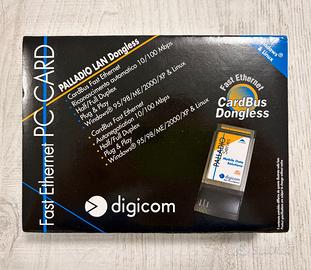 Vendo scheda di rete PCMCIA modello Digicom Palladio LAN Dongless, nuova nella sua confezione originale. La scheda è compatibile con Windows 95/98/ME/2000/XP e Linux, contiene il suo floppy disk originale con i driver per l'installazione. Dovrebbe essere una scheda a 32bit, quindi assicuratevi che il vostro PC sia compatibile. Nuova mai usata, vendo causa errato acquisto.