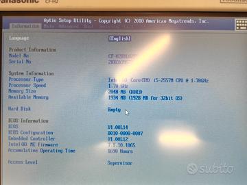 TABLE PANASONIC CF-H2 Manca il harddisk e la base per il harddisk Viene con Due batteria LA penna Caricatore
