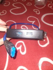 Pannello piccolo frontale di multipresa USB 3.0 ,compreso di adattatore slot 5,25"/3,25",e cavetto 3,0 di collegamento su scheda madre,prodotto funzionante .