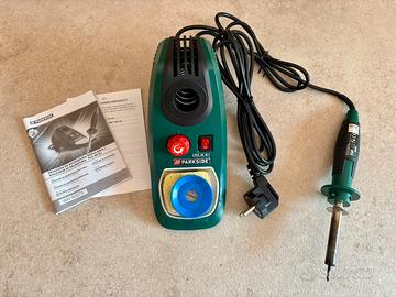 Vendo stazione di saldatura Parkside con controllo della temperatura,completa di tutti gli accessori in scatola,stagno,spugnetta,punta come in foto.