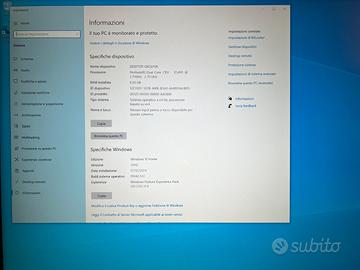 Windows 10 Home 64-bit Intel Pentium Dual-Core CPU E5400 2.70GHz 8GB RAM 500GB HDD DVD-Super multi drive Scheda video ASUS GeForce GT 710 2 GB DDR5 Lettore multiplo di memory card 5 porte USB 2.0 frontali + 2 USB 2.0 posteriori Entrate e uscite audio anteriori e posteriori Cavo di alimentazione compreso