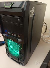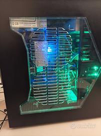 PC assemblato in un Case Gaming Atlantic con fan led verde e dissipatore led blu (bel effetto di combinazione colore).