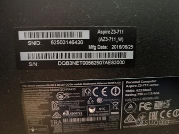 PC Acer all in One modello z3 711 processore i3 di quinta generazione ,1000gb memoria , 4gb RAM espandibile fino a 16gb , tastiera e mouse , 4 porte USB, 2 porte HDMI, 1 porta ethernet, schermo 24 pollici a led , formattato, condizioni ottime