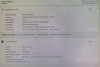 PC All in One Lenovo Processore Intel I3-4005U CPU @ 1.70GHz Display 21' Hard Disk ssd 256GB Ram 16GB Sodimm DDR3 WiFi Integrata Webcam Integrata