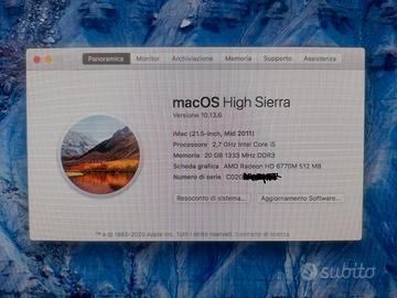 MacBook,Air,pro,21.5,21.5",iMac 21.5",2017,2020,macOS High Sierra, macOS 10.13.6,RAM 20GB, 1TB,Intel Core I5,AMD Radeon,intel,i5,
