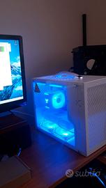 in vendita un pc appena assemblato, con cabinet minitower portatile e ventole ARGB controller e telecomando.