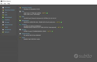 Processore: Intel i7 7700k (dissipatore Artic ad aria)