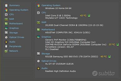 Asus X541UV con SSD da 500 GB e 20GB di RAM, perfetto per uso quotidiano, lavoro, studio e intrattenimento.