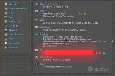 Asus X541UV con SSD da 500 GB e 20GB di RAM, perfetto per uso quotidiano, lavoro, grafica, studio e gaming Dotato di uscita HDMI compatibile 4K, ideale per collegamento a TV o monitor esterni. Processore Intel i5, scheda video dedicata Nvidia 2gb + 1gb, sistema fluido e pronto all'uso. HDMI, VGA, USB 2.0, USB 3.0, USB C e lettore CD/DVD. !!! In regalo mouse Logitech wireless !!! Condizioni ottime, batteria in buono stato, completo di alimentatore originale. La scocca presenta usura e segni. unica crepa è presente nella cornice del monitor, dovute alla poca resistenza del materiale. hardware perfetto.