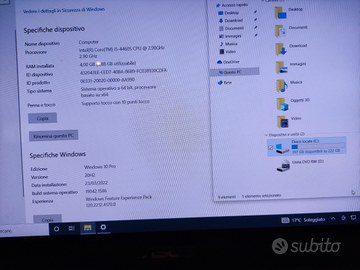 Processore intel i5 con disco SSD 240Gb 4Gb Ram, con USB 3.0, prese HDMI, masterizzatore DVD. Windows 10 pro, Office