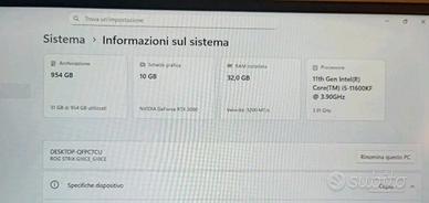 PC ASUS CASE A21 PLUS pari al nuovo macchina molto potente (CASE nuovo modulare con attacchi calamitati e filtri antipolvere lato in vero vetro temperato ) temperature processore in full load molto basse grazie al dissipatore professionale con 6 Heatpipes HCT. Perfetto per il Gaming ideale anche per lo streaming, la creazione di contenuti e l'editing video Componenti di marca di alta qualità stabili e efficienti Costruzione pulita e raffreddamento ottimale Processore Intel core i5-11600 KF 12Mb Cache up to 4,9 GHz (Tdp 125W) Scheda video Nvidia RTX 3080 Founder Edition (10GB GDDR6X) Ram 32 GB DDR4 Archiviazione SSD M.2 NVMe PCIe da 1 TB Scheda madre ASUS ROG Strix G10CE Alimentatore nuovo Be quiet! System Power 10 750W Windows 11 Pro con licenza attivata Modulo interno wifi e Bluetooth Spedito con la sua scatola Originale ASUS