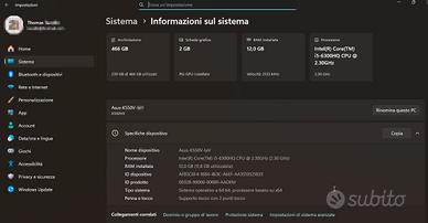 Il PC ha 500gb di hardisk a stato solido SSD ,per una velocità top, ha 12 GB di RAM per supportare al meglio Windows 11 ,che è già installato e funzionante al 100% e doppia scheda video , interna Intel e dedicata da 2gb brand invidia processore di sesta generazione Intel HQ ,girano ancora diversi giochi , magari un po' datati ma per la oro ,scuola funziona molto bene.