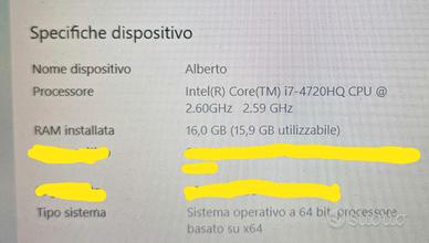 Vendo per passaggio altro pc un Asus N551J, perfettamente funzionante e tenuto in maniera maniacale dal punto di vista estetico. Dotato di schermo da 15,6", Ram 16gb, scheda video NVidia Geforce 940M, Processore Intel a 64bit. Il PC è dotato anche di videocamera anteriore, microfono e tastiera retroilluminata. Dispone tra i vari di 3 porte USB e una porta HDMI. Batteria ancora perfettamente funzionante, regge per ore anche senza cavo di alimentazione. Vendo con caribatterie originale Asus. Vendo solo con consegna a mano.