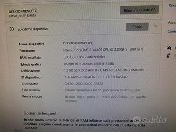 Computer perfettamente funzionante e veloce. CPU i5 2.80Ghz RAM 8Gb SSD 120 Gb OCZ HD 160 Gb Samsung (ha due hard disk) Monitor Dell 19” modello P190S Regalo Mouse e Tastiera Per maggiori dettagli tecnici potete vedere la foto. Il monitor presente un piccolo segno al centro che non preclude la fubzionalita o fastidi di visualizzazione. Windows 10 con licenza installato. Spedisco Per qualsiasi cosa contattatemi pure.