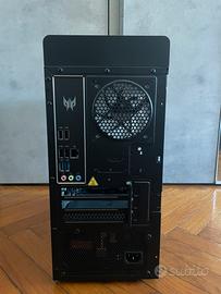 Il case è quello di un Acer Predator Orion 3000, adatto a contenere una GPU fino a 30cm. La scheda madre può ospitare un processore intel i7 di 12a generazione, e ram ddr4 fino a 3600MHz.