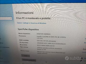 Vendo PC computer I5-6500 3,2 GHz,8Gb RAM,1 HD da 250Gb+1 da 500Gb, Windows 10 Pro installato.Con tastiera e mouse