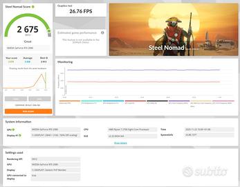 Vendo PC da gaming fisso perfettamente funzionante, usato solo per giocare, già assemblato, come da foto. Specifiche tecniche: - Scheda madre : Gigabyte X470 Aorus Ultra Gaming - CPU : AMD Ryzen 7 2700 con ventola di raffreddamento originale - GPU : Scheda video EVGA GeForce RTX 2080 8GB - RAM : Corsair Vengeance LPX 16GB (2x8GB) DDR4, 3000 MHz, C15 - SSD 1 : Samsung 970 EVO 500GB NVMe M.2 - SSD 2 : Crucial BX500 480 GB SATA - Alimentatore : Corsair TX650M, Semi Modulare, 80 Plus Gold, 650 W - Case : Cooler Master MasterBox 5 Black ATX con pannello trasparente laterale compreso di 2 ventole originali - Ventole aggiuntive : Corsair ML120 da 120 mm