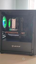 Vendo computer desktop da gaming e da ufficio assemblato personalmente con estrema attenzione nella scelta dei singoli componenti e nel montaggio. Specifiche Tecniche: - Processore (CPU): Intel Core i5-10400F (Base: 2.90 GHz / Turbo:4.30 GHz) - Scheda Video (GPU): NVIDIA GeForce RTX 2060 Super 8 GB VRAM - Memoria RAM: 16 GB DDR4 2666 MHz - Scheda Madre: ASUS Prime H510M-A - Archiviazione (SSD): 512 GB Solidigm P41 Plus Series NVMe PCle 4.0 (NUOVO) - Case: Unykach MIR B200 Micro ATX (NUOVO) - Alimentatore (PSU): Sharkoon WPM Gold Zero 550W (80 PLUS Gold)