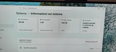 PC Assemblato perfettamente funzionante core i7 terza generazione, 8gb di RAM , 500gb SSD , scheda video Nvidia GeForce GT 610, Windows 11 installato, non ha nessun difetto