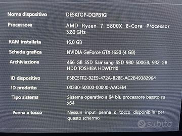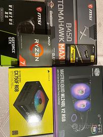Vendo PC da Gaming Componenti: Scheda madre: MSI B450 Tomahawk MAX II Processore: AMD Ryzen 7 5800X Scheda video: MSI Nvidia GTX1650 Ventus XS Alimentatore: Corsair CX750F RGB 80 Plus Bronze Dissipatore: Cooler Master MasterLiquid ML240L V2 RGB Ram: Corsair 16gb 3600Mhz (2×8) Ssd interna: Samsung 980 500 GB Case: Deepcool matrexx 50 add-rgb Vendo anche inseme al pc come da immagine tappetino 800x300x5, tastiera meccanica e mouse logitech.