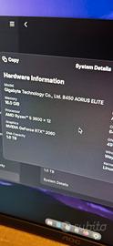 Pc da gaming assemblato da me qualche anno fa, ma è ancora una gran bella macchina. Vendo per passaggio ad un mac portatile (mi serve un portatile). Le condizioni sono impeccabili: l' ho sempre pulito, il cable management è perfetto. Le specifiche sono le seguenti: - Asus TUF Nvidia RTX 2060 OC 6GB - AMD Ryzen 5 3600 - 16GB RAM dual channel 3200mhz - disco NVME Samsung 980 pro 1000gb (un missile) -dissipatore ad aria Artic (la cpu è sempre fresca) -Case cooler master -Tanti led rgb che si possono programmare da bios (anche spegnere) -Alimentatore 650w cooler master cx650m (un pezzo veramente affidabile) -Scheda madre b450 aorus elite Lo vendo con Windows 11 installato, o per chi volesse con linux. Il PC ad oggi è ancora potente e non si fa intimidire dal gaming in full HD Insieme lascio anche le scatole di tutti i componenti, anche se la garanzia è scaduta, ma possono fare comodo in caso di futuri miglioramenti. Non esitate a chiedermi info aggiuntive. Ritiro a mano zona brescia o spedizione con tuttosubito