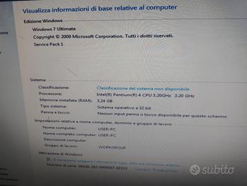 Vendo PC Desktop Acer, 4GB di Ram, Processore Intel Pentium da 3.20 GHz, Hard Disk da 160GB, Windows 7 senza licenza, pc abbastanza datato ma ancora funzionante ed in buone condizioni