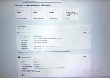 Vendo pc desktop all in one acer aspire modello c27-1655, monitor 27”, Ssd 1 tera, Cpu intel I5 (11th Gen) da 2.42 ghz, Ram 8gb ddr4 3200Mhz espandibile, scheda grafica integrata intel iris xe, con hub usb alimentato con presa esterna. Sistema operativo windows 11 home. Il pc é in ottime condizioni. ⛔️NON TRATTO IL PREZZO ⛔️NON SCAMBIO RICHIESTE DI CUI SOPRA BAN IMMEDIATO.