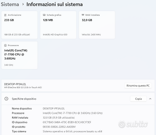 PC All-in-One HP EliteOne 800 Touch Screen G3 da 23,8" - versione business in ottime condizioni di utilizzo, senza segni e perfettamente funzionante in tutto.