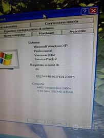 vendo pc desktop amd sempron 2400+ 1.68 GHz con 192 mb diram, HD 40gb, DVD e floppy A, con windows XP. tutto funzionante. trattasi di pc vintage.