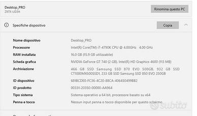 Pc desktop assemblato i7 16 gb ram + ssd veloci