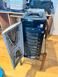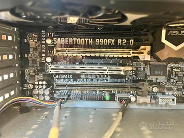 Case: Thermal Take iper ventilato con ventole addizionali Scheda madre: ASUS SABERTOOTH 990FX certificata militare TUF Processore: AMD FX-8320 Dissipatore: Artic Cooler Freezer con dissipatore e ventola enormi Alimentatore: Semi modulare XFX PRO-750W classe Bronze RAM: 16 GB G-Skill Scheda video: Sapphire Radeon Masterizzatore DVD Hard Disk: Samsung 850 pro