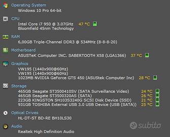 Vendo pc desktop assemblato desktop di fascia medio alta completo di 2 monitor asus, mouse logitech, tastiera microsoft, web cam.