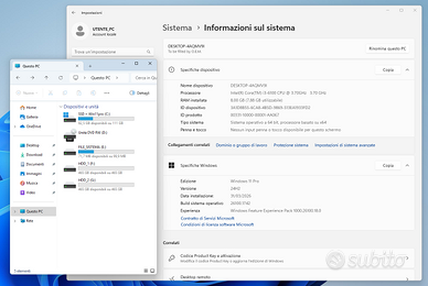 PC USATO E RICONDIZIONATO, TESTATO E PERFETTAMENTE FUNZIONANTE, il case esteticamente presenta qualche segno come visibile nelle foto. PORTA HDMI SUL RETRO PER EVENTUALE COLLEGAMENTO A TELEVISORE caratteristiche: CASE: HAXXTEEL MID-TOWER SCHEDA MADRE: GIGABYTE GA-H110M-S2H CPU: INTEL i3 6100 3,7 GHz RAM: 8 GB DDR3 espandibili massimo a 32 GB HDD: 1 TB (2 x 500 GB) SSD: 120 GB + Windows 11 pro installato e attivato ALIMENTATORE: 500W DRIVE CD - DVD OTTICO interfacce: FRONTALI: -2 x USB A 2.0 -1 x USB A 3.0 -jack cuffie e microfono -drive CD - DVD ottico POSTERIORI: -4 x USB A 2.0 -2 x USB A 3.0 -HDMI -VGA -DVI -ETHERNET -2 x jack in -1 x jack out -2 x ingresso ps1 📦 Modalità di consegna: -Spedizione sicura con imballaggio accurato -Ritiro a mano in zona previo accordo