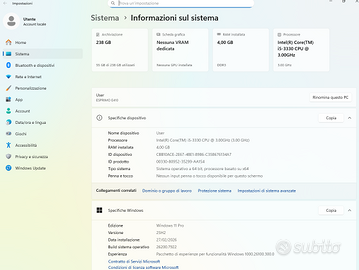 Sistema operativo: Windows 11 Pro 64 bit (versione 25H2)
