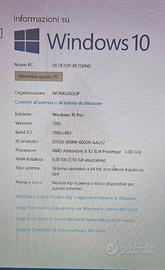 Vendo per inutilizzo desktop Hp con processore AMD Athlon II, 8Gb RAM, 250Gb disco fisso, Windows 10 licenziato, lettore / scrittore DVD CD, 10 porte USB, uscita video HDMI con cavo associato, ulteriore cavo per uscita video serializzata. Revisionato di recente con sostituzione banco RAM e batteria tampone