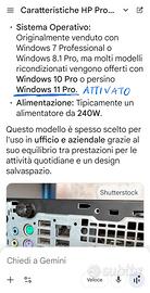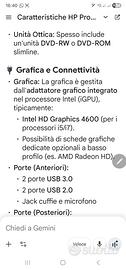 PC casa Small form factor, perfettamente funzionante, caratteristiche come da foto, Scheda madre HP, Cpu i5 4590, memoria 8gb espandibile, 1 Disco SSD 256Gb Sata III con Windows 11 pro attivato, 1 Disco da 500gb tradizionale sata III, Scheda video Intel con memoria condivisa, numerosi porte USB, video, ethernet, ecc.