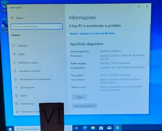PC Desktop HP Prodesk 600 Intel Core i5-8600 CPU 3.10GHz 8Gb RAM 256Gb Disco SSD tutto funzionante con diverse porte USB frontali anche la type-c ed altre porte nella parte posteriore è presente sia la VGA che la visual port appena installato windows 10 Pro Il prezzo si riferisce alla macchina ed al cavo di alimentazione Ottima soluzione sia per la casa che per l'ufficio Consegna a mano oppure spedisco
