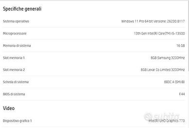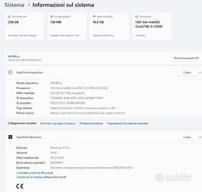Vendo Pc Desktop HP SFF 290 G9 + Monitor samsung 32 Curvo Bianco, in perfette condizioni. Il pc ha garanzia fino a Ottobre 2027, usato pochissimo in una seconda casa, in fase di acquisto ho fatto aggiungere 8gb di Ram e l'installatore si vede che ha staccato il cavo del DVD e non si apre, non avendo avuto bisogno non l'ho mai sistemato. Per foto o informazioni contattatemi. Possibilita' di vendita separata
