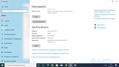 - Sistema operativo: Windows 10 Pro, aggiornabile gratuitamente a Windows 11 Pro