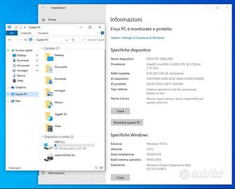 PC DESKTOP LENOVO THINKCENTRE M910T RICONDIZIONATO, TESTATO E PERFETTAMENTE FUNZIONANTE caratteristiche: SCHEDA MADRE: LENOVO IQ270MS CPU: INTEL i3 6100 3,7 GHz RAM: 8 GB DDR4 in totale sono presenti 4 slot RAM HDD: 1 TB (SEAGATE)+ Win10pro (Attivato) (se preferito posso installare Win11pro attivato, senza costi aggiuntivi) ALIMENTATORE: 210W interfacce: FRONTALI: -4 x USB A 2.0 -jack cuffie -jack microfono - dvd ottico POSTERIORI: -4 x USB A 2.0 -VGA -ETHERNET -1 x RS-232 -2 x jack in -1 x jack out -2 x display port 📦 Modalità di consegna: -Spedizione sicura con imballaggio accurato -consegna a mano in zona previo accordo, luogo da concordare
