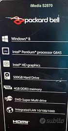 Vendo per inutilizzo PC fisso Packard Bell iMedia S2870, funzionante e pronto all'uso. Ottimo come PC base per navigazione internet, documenti, o per pezzi di ricambio. Formula visto e piaciuto.