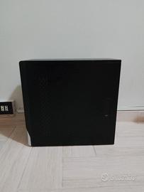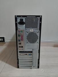 PC fisso Asus Intel core 2, con cavi, alimentatore e VGA, e carrello porta PC.